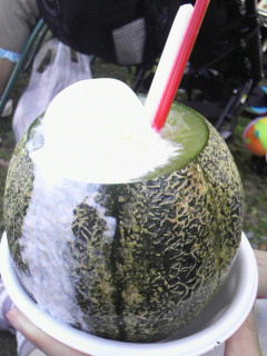 日陰に行って食べたらメロンがよく冷えてて、甘さが身体にしみわたる~♪(*´∇`*)